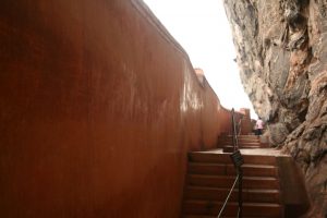 Then, he built his palace on the top of this rock and decorated its sides with colorful frescoes. So, the paintings would have covered most of the western face of the rock, an area 140 meters long and 40 meters high. In Fact, there are references in the graffiti to 500 ladies in these Painting. However, most have Losted forever. On a Small Plateau about halfway up the side of this rock, he built a gateway in the form of an enormous Lion.